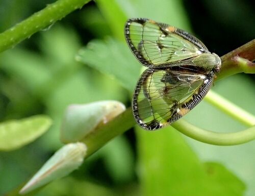 そして、ついに赤鼻の美麗なビワハゴロモが出現しました。テングビワハゴロモの一種でしょうか。この天女に会いたい一心で、家族の猛反対を押し切ってタイ南部の秘境カオソックまでやってきたのです。天にも昇る気分とはまさにこのことですね。 羽を広げてみ…